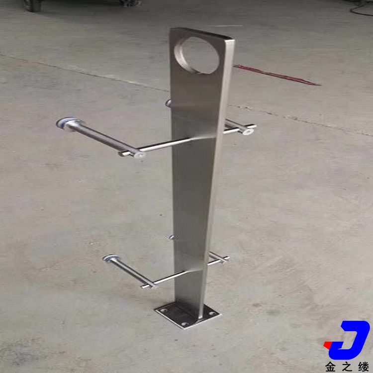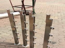 不銹鋼穿管立柱。柱身有穿管卡子,常見是4個穿孔,一般穿12mm、14mm、16mm、19mm的小管。