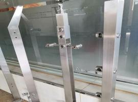 不銹鋼掛玻璃立柱。使用不銹鋼玻璃掛件、不銹鋼玻璃夾對玻璃進行固定,一般夾8mm ~ 12mm的單片鋼化玻璃。或者夾膠鋼化玻璃,尺寸視圖紙而定。